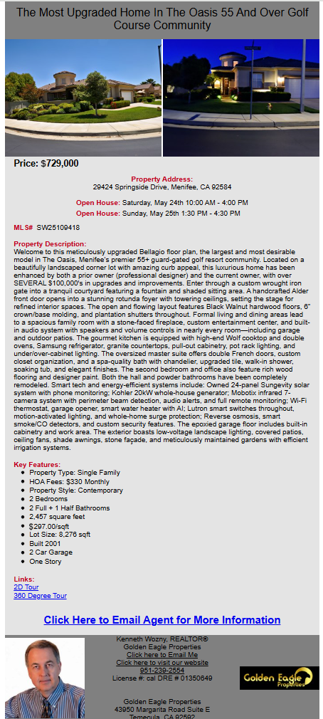 Example Of My E-Mail Blast To Real Estate Agents