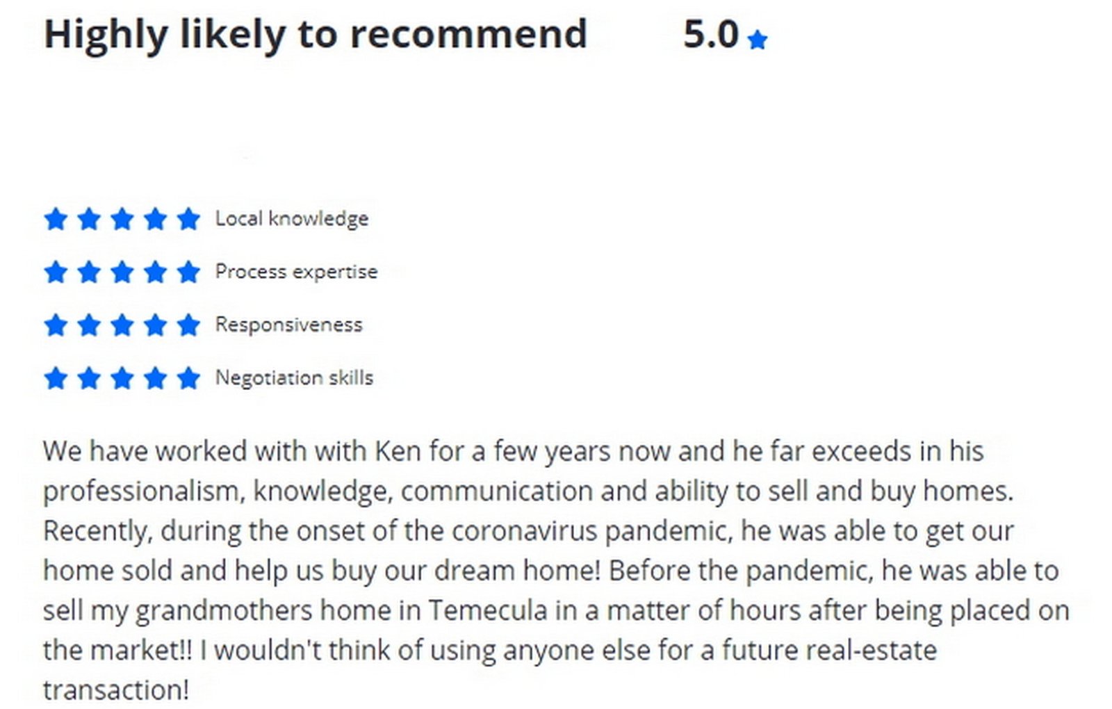 Just An Example Of Our Many 5 Star Ratings...